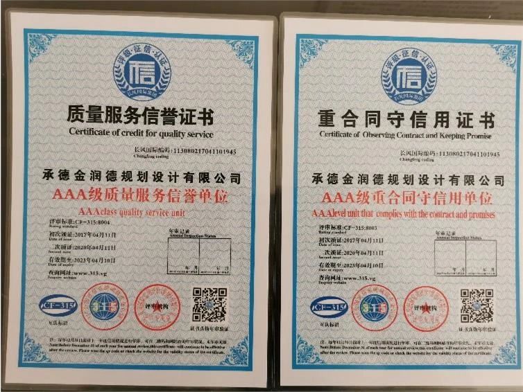 示范單位證書”、“AAA級質(zhì)量服務榮譽證書”、“AAA級重合同守信用證書”并得到了“AAA級信用單